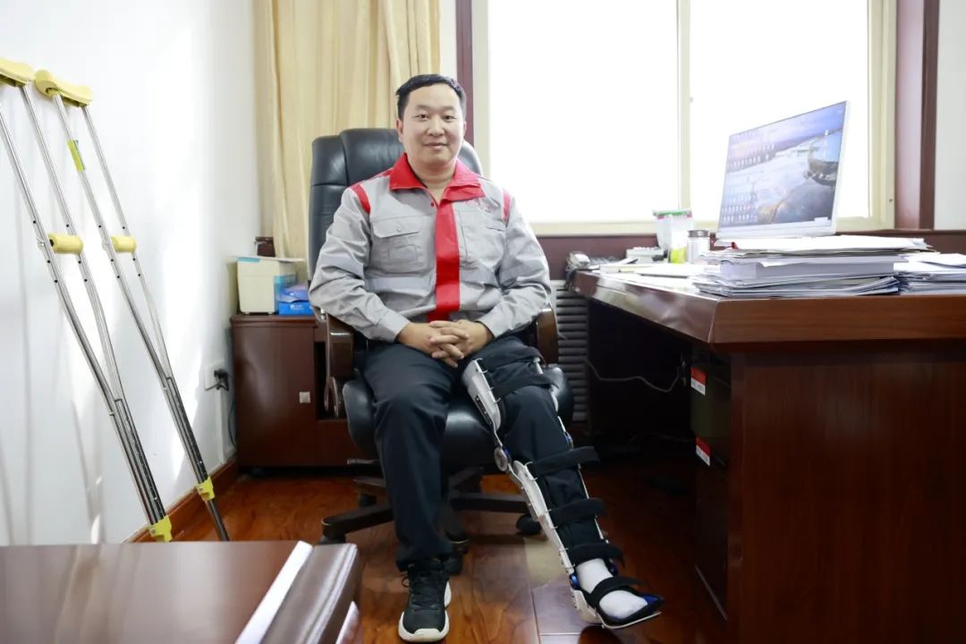 设备安装怎么办?工艺优化如何进行?工期质量、进度如何保障?现场协调能不能顺利进行?受伤后他首先想到的不是如何治疗、尽快康复,而是项目上的千头万绪。经过治疗后,医生再三嘱咐要在医院多打几天吊瓶后回家静养,电话那头家人也焦急的劝说他要遵医嘱回家静养,不要因为带伤坚守导致骨头愈合较慢或者留下后遗症的情况发生。可作为项目负责人的他放心不下项目上的一切,他不想因为自己的掉队导致项目出现任何问题。把医生的医嘱抛之脑后,细心向家人解释项目建设的重要和关键,“项目是我负责的,是我的工作,我离开了项目现场,项目咋办?与其让我在家天天牵挂着项目建设,不如让我安心踏实的留在项目现场。”就这一句简单的话语让他在医院接受短短五天治疗后便拄拐重新活跃于项目现场。