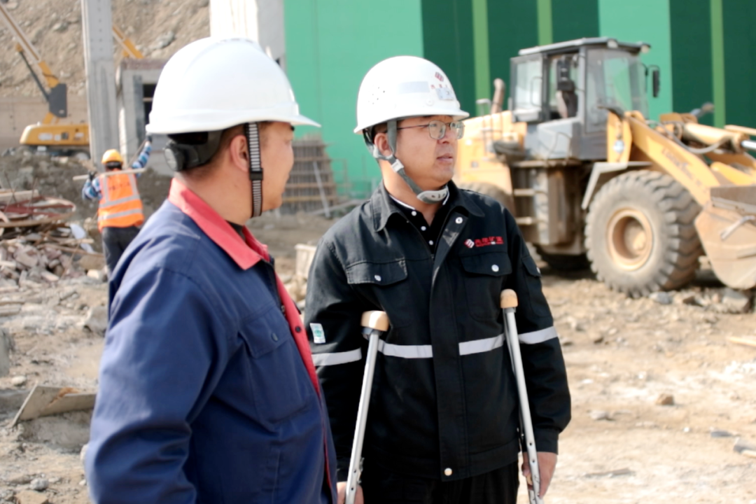 瘸着腿、拄着拐,一瘸一拐在项目现场查看施工进度、质量和安全。他,便是西部铜业公司副总经理王阳。自项目开建以来,便日夜坚守在项目现场,即便身体不适,也没有迫使他停下忙碌的脚步,对项目的那份执着与强烈的责任感,如熊熊烈火在他心中燃烧,驱使他毅然决然坚守在项目一线。